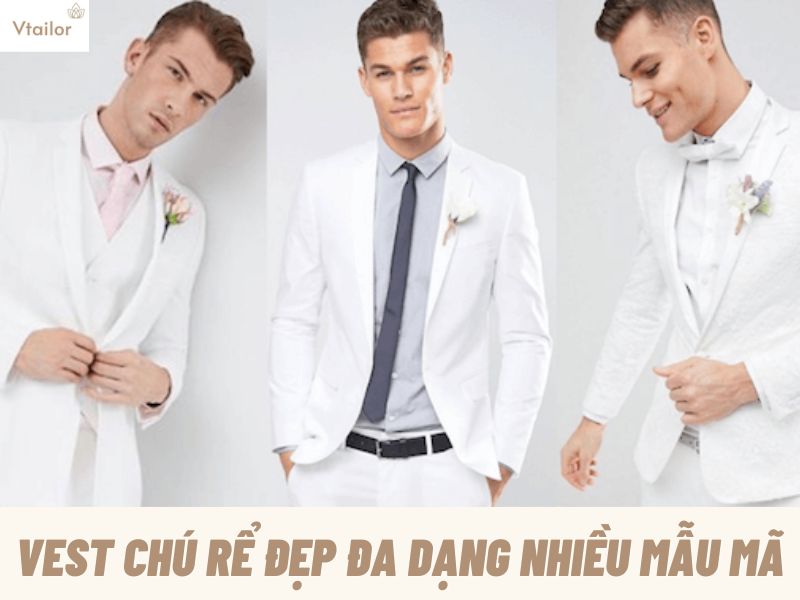 Vtailor có nhiều mẫu vest đa dạng về kiểu dáng, màu sắc, chất liệu, phù hợp với nhiều vóc dáng và sở thích của khách hàng. Các mẫu vest của Vtailor được thiết kế theo xu hướng thời trang mới nhất, mang đến cho chú rể vẻ đẹp sang trọng, lịch lãm và trẻ trung.